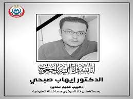 شهدت مستشفى تلا المركزي بالمنوفية الأمس الاربعاء، وفاة طبيب يُدعى “إيهاب صبحي دياب” 37 عامًا، طبيب تخدير أثناء عمله بالنوبتجية بمستشفى تلا المركزي.