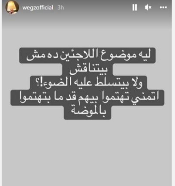“ليه موضوع اللاجئين ده مش بيتناقش ولا بيتسلط عليه الضوء اهتموا بيهم بدل ما تهتمو بالموضه”