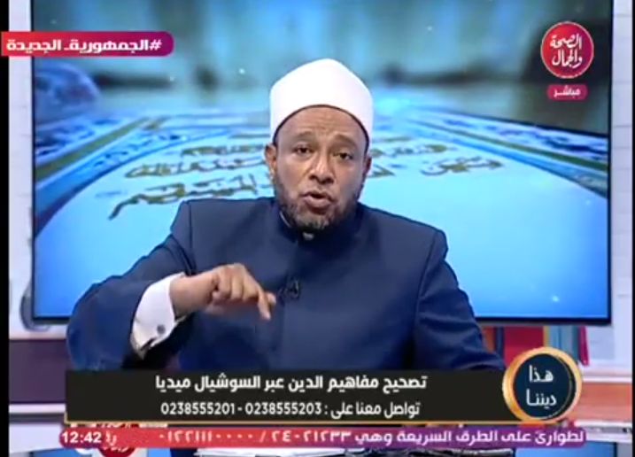 واضافت “المتصلة” ، من خلال مداخلة هاتفية لبرنامج “هذا ديننا” الذي يذاع على شاشة فضائية قناة الصحة والجمال، ان قامت بخدمته وتلبية طلباته ومتطلبات منزل الزوجية بدون اي شكوي او اعتراض ، وتابعت قائلة : ان زوجها دائما ما يوجه لها السباب والاهانات ، حيث قالت:” دايما بيهيني ويسب الدين ويتف علي وشي” ، مشيراً إلى انها سيدة ملتزمة دينيا وتقوم باداء فريضة الصلاة والصوم دائما ، واردفت قائلة: ان زوجها لم يقم بشراء ملابس لها اطلاقا منذ ان تزوجته ، وردا على سؤال المتصلة قال فضيلة العالم الازهري الشيخ “اشرف عبد الجواد” ، ان ذلك الزوج هو نموذج سئ للازواج والرجال ، مشددا على أنه يستحق ان ضرب النار في ميدان عام ، حيث قال: “دا راجل عاوز ضرب النار في ميدان عام ” .