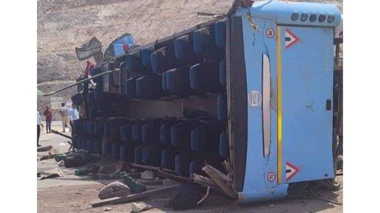لقي 5 أشخاص حتفهم ، وأصيب نحو 50 شخصا في حادث انقلاب اتوبيس سياحي بطريق السويس – العين السخنة، وفد تلقي الدكتور اسماعيل الحفناوي وكيل وزارة الصحة بالسويس إشارة من غرفة العمليات بوقوع حادث انقلاب اتوبيس سياحي رقم يحمل لوحات س أ د 182 ناحية العين السخنة كان في طريقه إلى أحد الشواطئ.