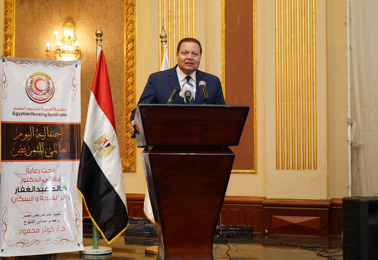 جاء ذلك خلال كلمته اليوم باحتفالية النقابة العامة للتمريض المصري برئاسة الدكتورة كوثر محمود، نقيب التمريض وعضو مجلس الشيوخ، باليوم العالمي للتمريض، والذي يحتفل به العالم في الثاني عشر من شهر مايو كل عام والذي يحمل هذا العام شعار: “تمريضنا.. مستقبلنا”